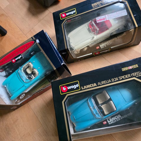 Franklin mint: Mercedes-Benz 540K Cabriolet modellbil i metall, i rød farge med gult interiør. Detaljert modell i skala, viser klassisk design med kromdetaljer og åpent tak. Passer som samlerobjekt eller dekorasjon. Mangler merke foran på panseret.