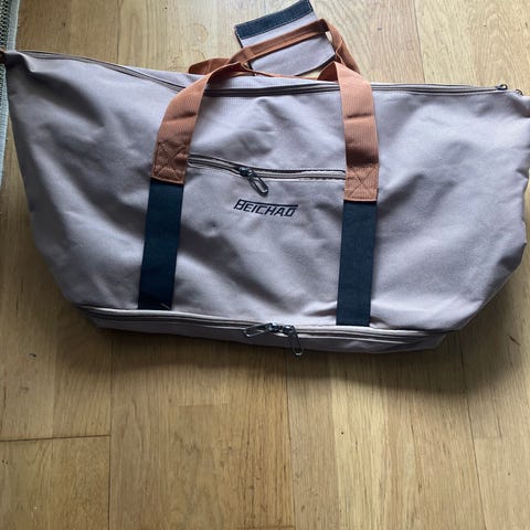 Stoff Weekendbag Unisex Beige med Oransje Håndtak