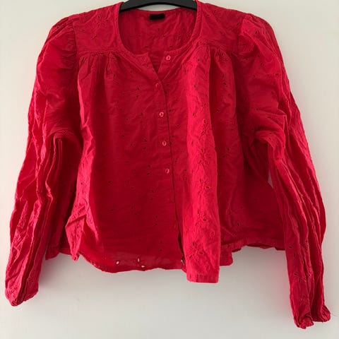 Nydelig, bringebærrød bluse med ledig passform.