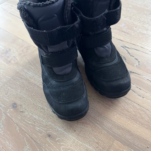 Timberland barn sko i størrelse 37, unisex modell. Skoene er svarte og har borrelåsfester for enkel på- og avkledning. Materialet og designet er tilpasset for å gi god støtte og komfort for barn.