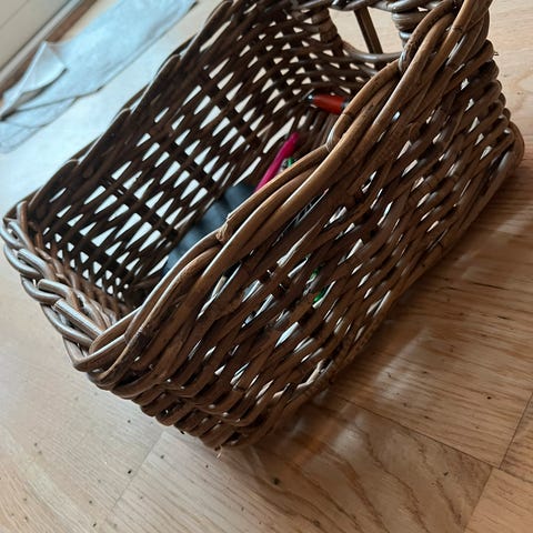 Selger 3 søte kurver i hvit. Kan henges eller stå på gulvet. Perfekt for luer, votter eller å legge paraplyen i.