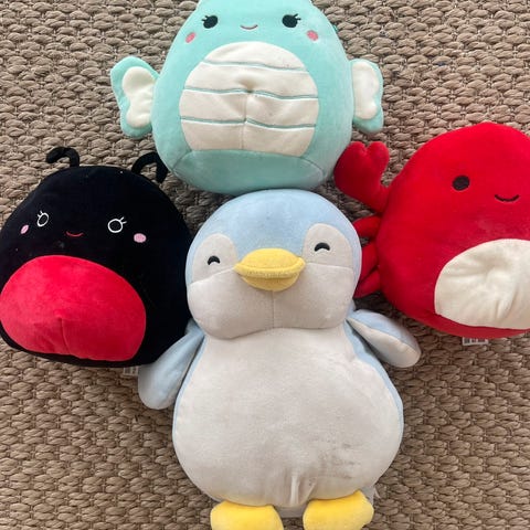 Diverse kosedyr selges; To stk squishmallows (en større og en liten vendbar - se bilde), Peppa Gris, Pippi Langstrømpe og myk tøyball. Lite og pent brukt. Kan sendes