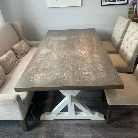 Spisebord, stole og benk