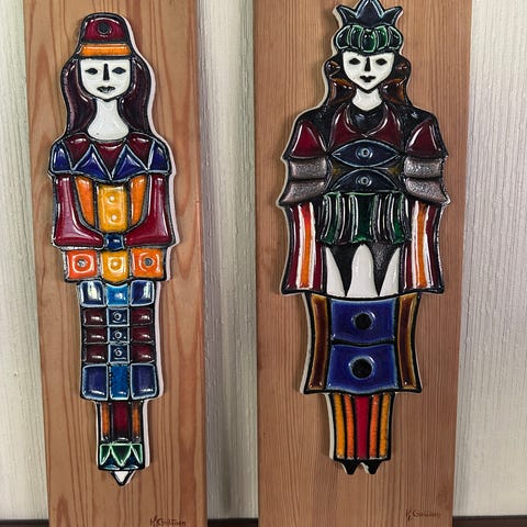 Høyde planke 70 cm, figur høyde 50 cm, bredde 18 cm. Jeg har dessverre ikke mulighet for å sende.