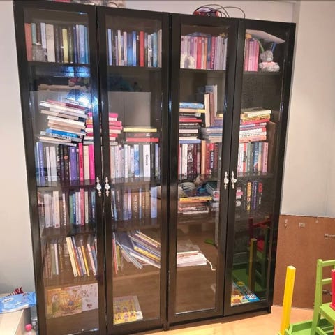 Glasskap med glasshyller plass til servise, pynt eller bøker