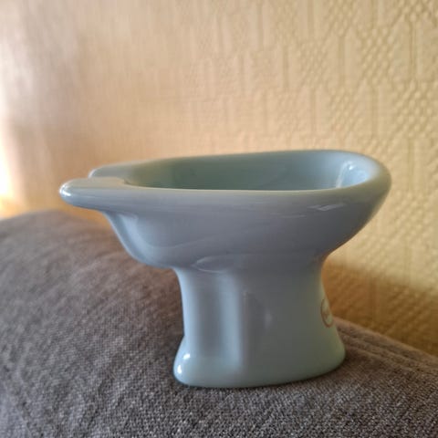 Diameter 11,5 cm. Mangler litt maling på kant, se bilder. Lite bruksslitasje. Lett i vekt, tror det er aluminium. Bridge reklame. Kan sendes. Frakt betales av kjøper.