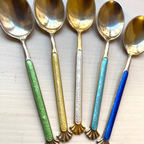 6 stk Aksel Holmsen forgylte emalje moccaskjeer