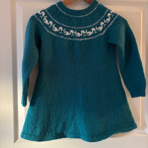 Ullgenser (100% ull) str.104. Høy hals med glidelås gjør det enkelt å regulere varme + ta av/på. Forsterkede hull til tomlene. Super som mellomlag eller alene høst/vår.