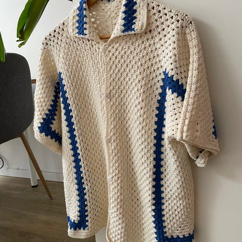 Zegna skjorte for menn i størrelse M. Skjorten er hvit med et rutemønster i blått. Laget av 100 % bomull, som gir komfort og pusteevne. Passer til formelle og uformelle anledninger.