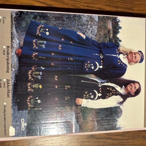 Brodert bunad veske graffer med svart bakgrunn og flerfarget blomstermotiv. Oval form med detaljerte broderinger i rødt, grønt.