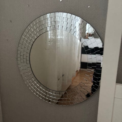 Det store speilet «mangler» en liten svart flik nede rundt speilet (det var slik da jeg kjøpte det). Se bilder.