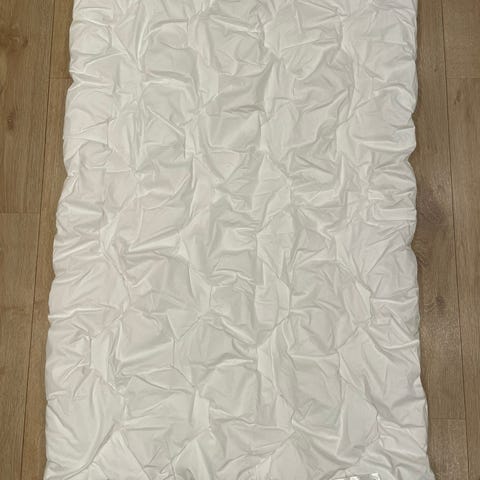 Edit: Fann eit rosa stretchlaken til grindseng som er lagt oppi. Sjå siste bildet.