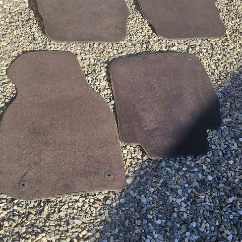 Volvo XV90 tekstilmatter og gummimatter for bilinteriør. Tekstilmatter er spesifikke for bakre sete og er laget i Nederland. Gummimattene er utformet for å passe V90-modellen og har et rillemønster for å fange opp smuss og væske. Produktene er originale Volvo-deler med modellnummer 32344339 og 32344528.
