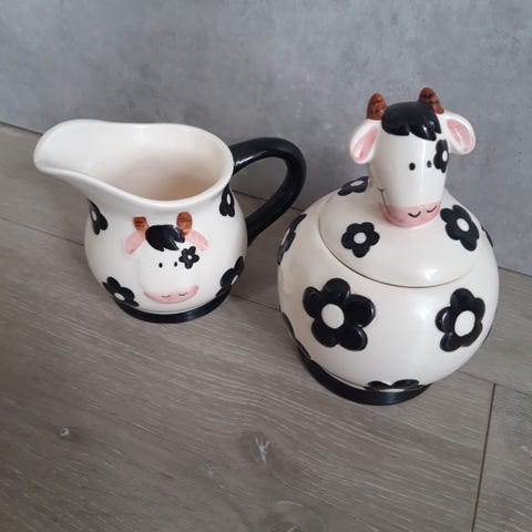En vintage ku fløtemugge og sukkerskål ( ikke lokk)