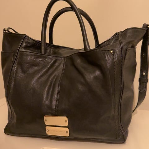 Praktisk og pen veske i brun lær. Her kan du få plass till pc og treningsklær, også fin til håndbagasje.