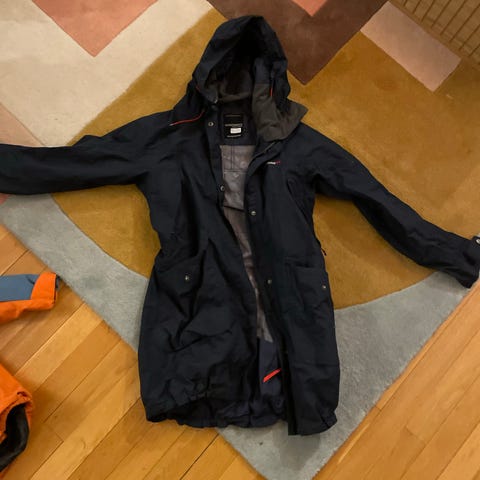 Den har en toveis frontglidelås med en knappet klaff for ekstra beskyttelse mot elementene. Justerbare mansjetter med borrelås gir en personlig passform, og midjen kan justeres bak for en mer skreddersydd silhuett. Parkasen er utstyrt med flere praktiske lommer, inkludert en glidelåslomme på brystet og en innvendig nettinglomme. Reflekterende detaljer og en reflekterende logo øker synligheten i mørket.
