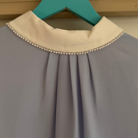 FWSS Bluse i lysblå, størrelse XS. Blusen har plisserte detaljer på baksiden.