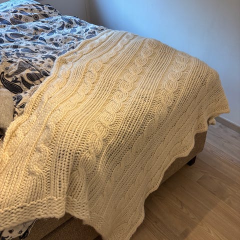 Selger en hjemmestrikket teppe til den for 3000kr den er helt ny