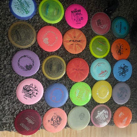 Innova Discgolf Frisbee Sett bestående av flere disker i ulike modeller og farger. Diskene inkluderer blant annet modeller som Leopard, Champion, Sidewinder, Destroyer og flere. Materialet er plast, og diskene er egnet for bruk i discgolf. Settet inneholder disker med forskjellige flygeegenskaper og design. Seller en av vær te 150kr