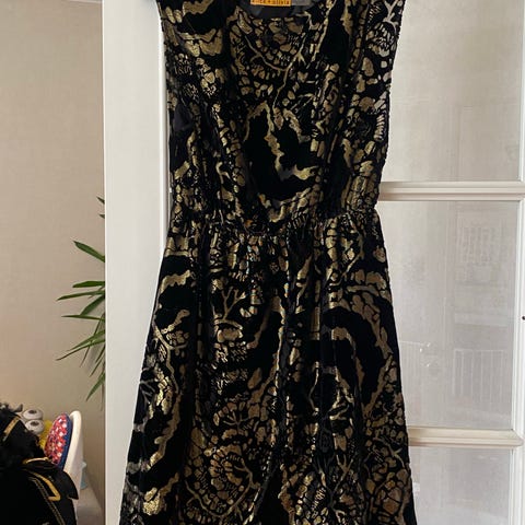 Lekker kjole med fine detaljer, puffermer og kappekant i feminint snitt. Kjolen har underkjole. Jeg har kun prøvd den hjemme, men brukte litt tid på å finne ut at den blir litt vel ungdommelig for meg, så søker ny eier. Kjolen kostet kr. 2398 på Brando og selges for kr. 1400. Bud under prisen aksepteres ikke.