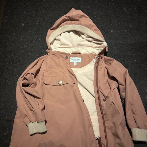 MINI A TURE Parkas Jakke i rosa farge, størrelse 104, designet for jenter. Jakken har hette, flere lommer med klaffer og trykknapper, og er laget for barn.