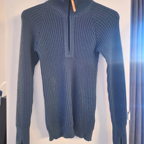 Ullgenser (100% ull) str.116. Høy hals med glidelås gjør det enkelt å regulere varme + ta av/på. Hull på rygg og et erme er forsvarlig stoppet. Forsterkede tommelhull i bråt. Super som mellomlag eller alene høst/vår.
