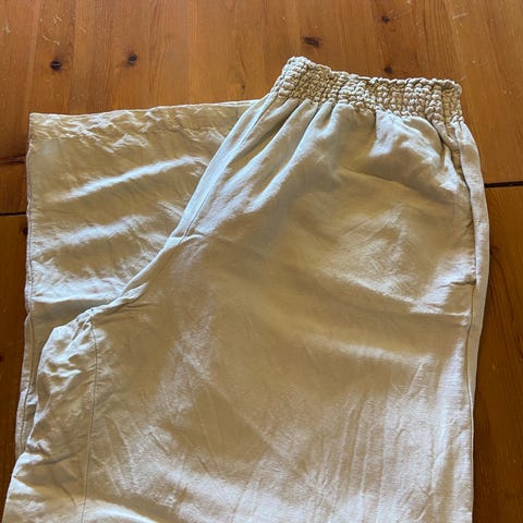 gulbeige i fargen, hel og fin :) men vaskeanvisning mangler