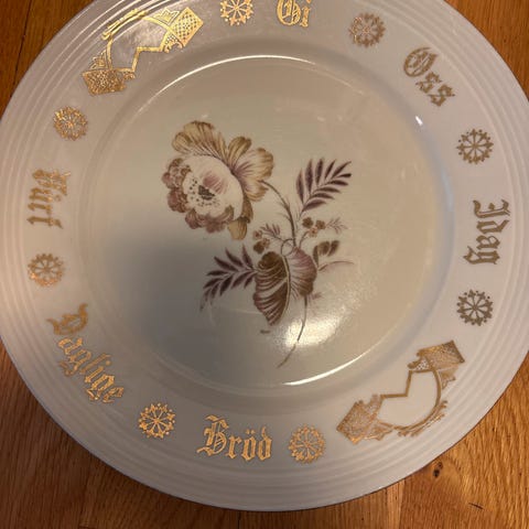 Kjempefin vintage blå og hvit smørefjøl fra Porsgrund.
