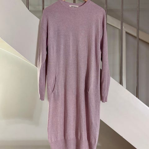 Litt tyngde i stoffet, så den faller fint. Tre knapper å lukke med.
