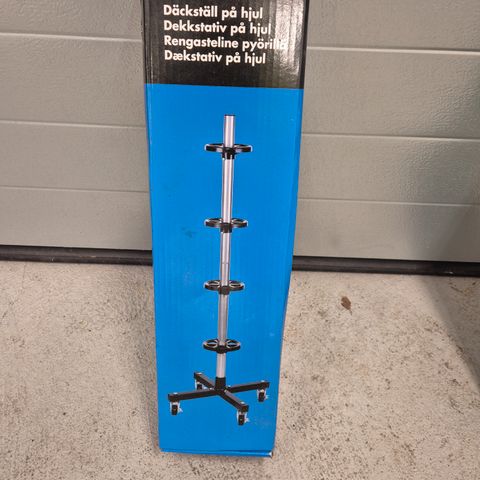 Dekkstativ med trekk, kjøpt på Thansen, ny pris 699. Alu, passer til 15-22 tommers hjul.