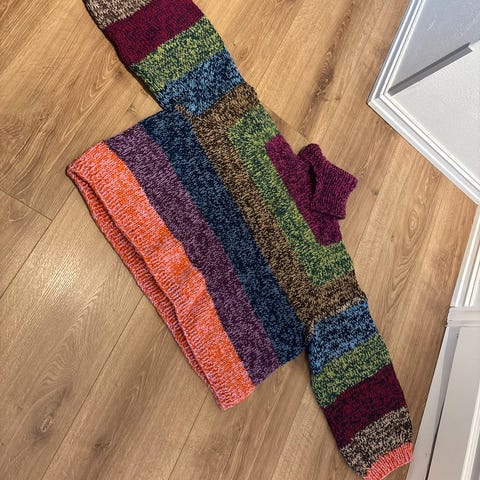 God og myk strikka høstgenser. Strikket i Du store alpakka Pus. Ubrukt.