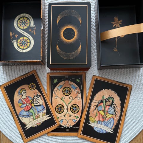 Komplett Bruno Bieri Gypsy Lenormand Oracle Deck kortspill med 36 kort. Kortene inneholder symboler og bilder basert på den kjente Mlle Lenormand Oracle Deck, brukt til spådom og spådomskunst. Kortstokken er i engelsk utgave og leveres i en rød eske med illustrasjoner. Passer til bruk i spådom og personlig refleksjon.