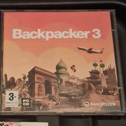 Backpacker 3 PC-spill. Spill som utfordrer spilleren til å reise og utforske ulike land og kulturer gjennom interaktive oppgaver og spørsmål.