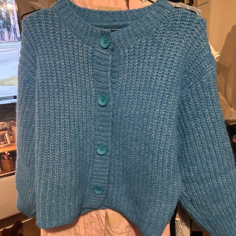 God og varm jakke med fine detaljer i ull med lommer og fôr. Kort modell. Jeg er 171cm høy. Fin rødfarge.