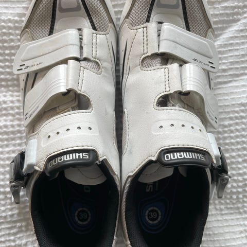 Selger et par godt brukte Shimano spinningsko. Klossene fungerer fortsatt fint. Størrelse 38.