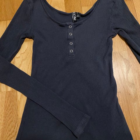 Genseren har en veldig åpen hals og knappedetaljer foran.