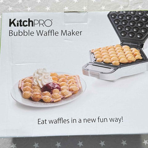 KitchPRO Animal Waffle Maker med hvit farge og dyremønster. Elektrisk vaffeljern med to indikatorlys for varme og klarhet. Designet for å lage vafler med dyreformer. Effekt: 800-1000W, spenning: 220-240V, 50-60Hz.