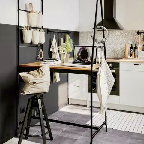 Diverse METOD benkeskapstammer med dører fra IKEA, her brukt til skrivebord, men kan brukes til så mangt.