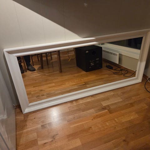 Speilet kan stå på gulv inntil vegg, eller henges på vegg enten stående eller liggende.