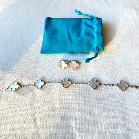Tilhørende armbånd er 18cm lang med stemplet sølvlås og ekte sølv detaljer, blomster og beads i ulike størrelser … utrolig fint enten solo eller i kombinasjon med andre kjeder og armbånd…