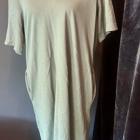 Kjole med 3/4 armer, lommer og knytting i livet.