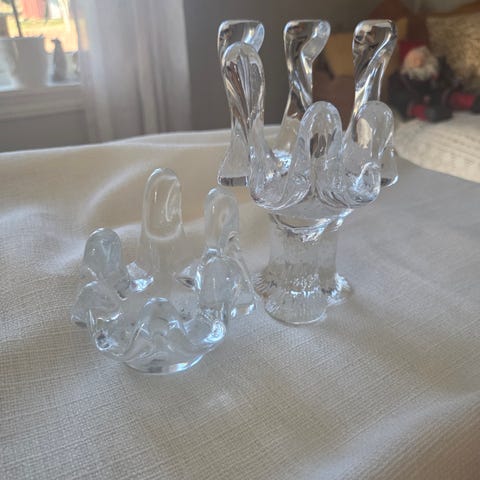 Flotte engler i glass,fin stand.usikker på produsent,mulig Hadeland-fin julepynt .bud