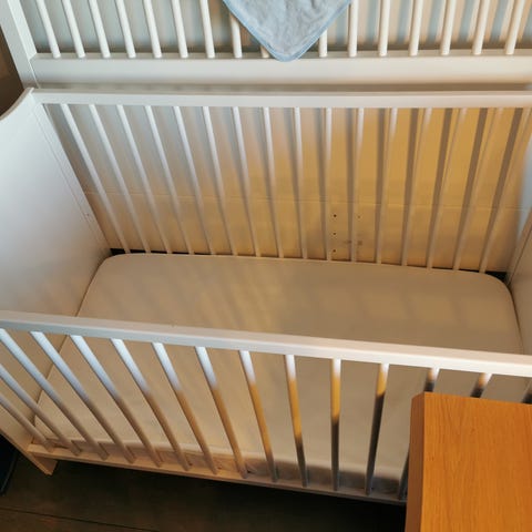 En brukt barneseng fra jysk selges. Denne er arealeffektive og med mye lagringsplass. Den har et skap, skuffer og hyller. Det er også godt med plass for når barnet skal gjøre lekser.