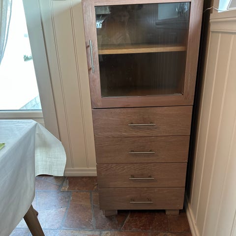 Svart kommode. Den har merker på siden av midterste skuff, se bilder. Den er tung og dere bør være to som bærer.