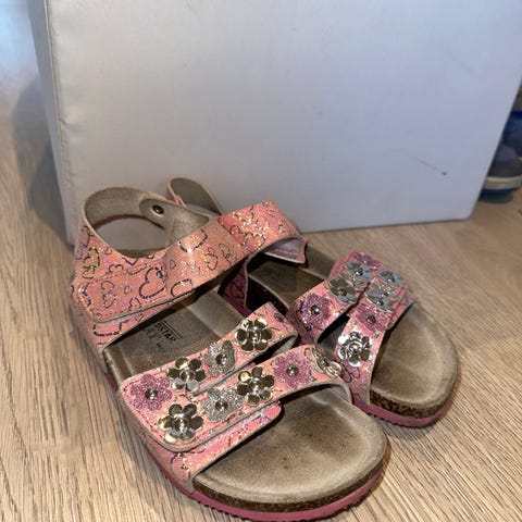 Rosa barnesandal for jente i størrelse 30. Sandalene har justerbare borrelåsremmer og komfortabel gummisåle.