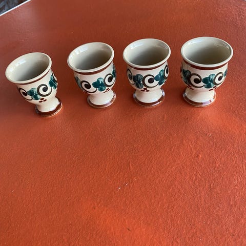 Sett med 6 unike, håndlagde eggeglass i keramikk.