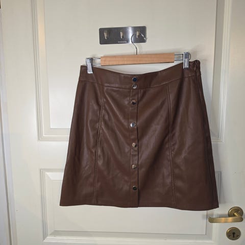 Skinnskjørt brunt str 42, selges kr 200