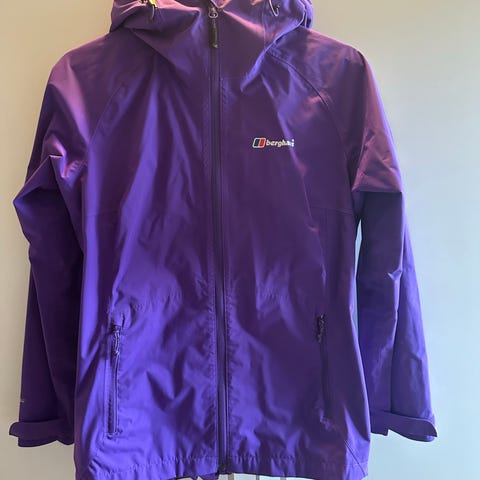 Lilla, lett og tynn regnjakke fra merket Berghaus. Regnjakken har fått vurderingen 15,000 mm vannsøyle av leverandøren.