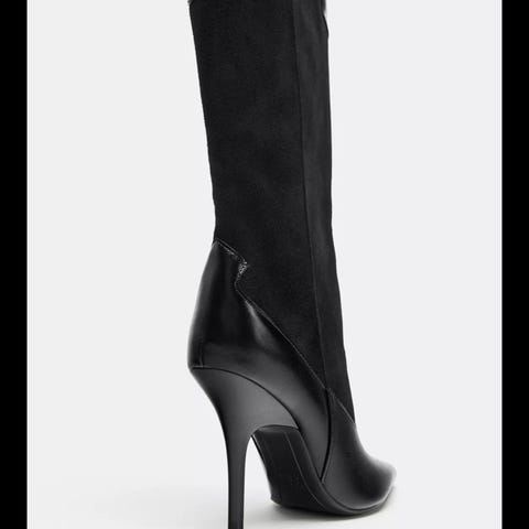 Støvletter i størrelse 39 for dame. Støvlene er svarte og laget av skinnmateriale. De har en middels høy hæl og elastiske sider for enklere på- og avkledning. Designet egner seg til hverdagsbruk, men også til fest.