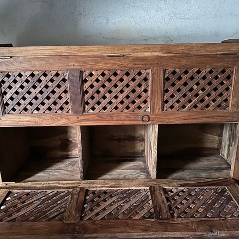 Flott Bombay skap selges til en god pris! Kan brukes til servise, vin glass eller som i dette tilfellet i en garderobe for å oppbevare sko og vesker ☺️